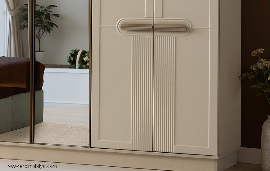 Ürüne Ait Parça Adetleri : 6 Kapılı Dolap, Şifonyer + Aynası, 2 Adet Komodin, Başlık Bu Üründe Başlığa Uygun Baza ve Yatak Ölçüsü : 150 cm * 200 cm veya 160 cm * 200 cm dir(Yaylı Yatak ve Baza Fiyata Dahil Değildir) * TSE |