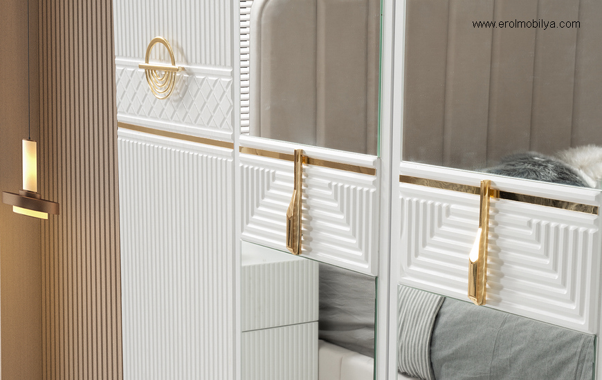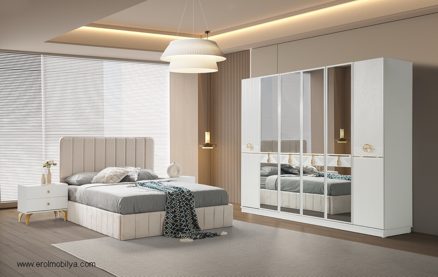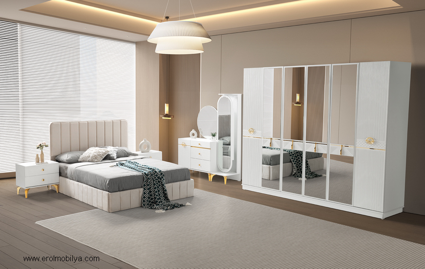 Ürüne Ait Parça Adetleri : 6 Kapılı Dolap, Şifonyer + Aynası, 2 Adet Komodin, Başlık Bu Üründe Başlığa Uygun Baza ve Yatak Ölçüsü : 150 cm * 200 cm veya 160 cm * 200 cm dir(Yaylı Yatak ve Baza Fiyata Dahil Değildir) * TSE |