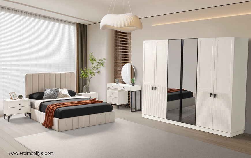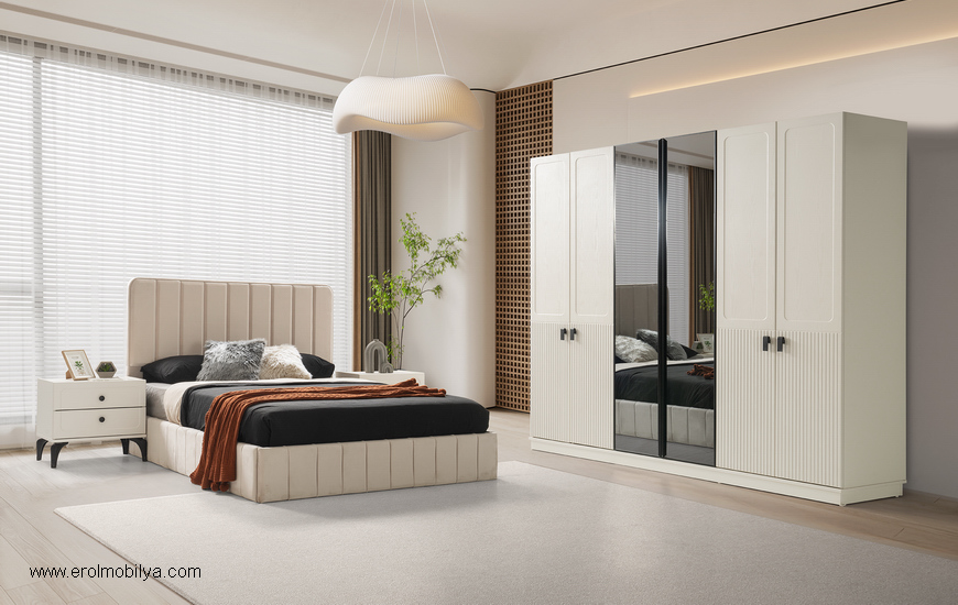 Ürüne Ait Parça Adetleri : 6 Kapılı Dolap, Şifonyer + Aynası, 2 Adet Komodin, Başlık Bu Üründe Başlığa Uygun Baza ve Yatak Ölçüsü : 150 cm * 200 cm veya 160 cm * 200 cm dir(Yaylı Yatak ve Baza Fiyata Dahil Değildir) * TSE |