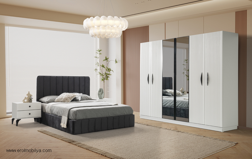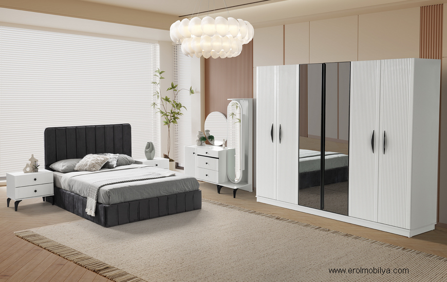 Ürüne Ait Parça Adetleri : 6 Kapılı Dolap, Şifonyer + Aynası, 2 Adet Komodin, Başlık Bu Üründe Başlığa Uygun Baza ve Yatak Ölçüsü : 150 cm * 200 cm veya 160 cm * 200 cm dir(Yaylı Yatak ve Baza Fiyata Dahil Değildir) * TSE |