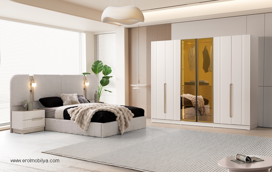 Ürüne Ait Parça Adetleri : 6 Kapılı Dolap, Şifonyer + Aynası, 2 Adet Komodin, Başlık Bu Üründe Başlığa Uygun Baza ve Yatak Ölçüsü : 150 cm * 200 cm veya 160 cm * 200 cm dir(Yaylı Yatak ve Baza Fiyata Dahil Değildir) * TSE |