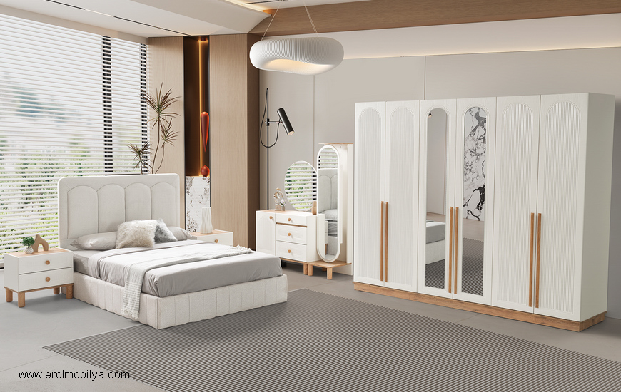 Ürüne Ait Parça Adetleri : 6 Kapılı Dolap, Şifonyer + Aynası, 2 Adet Komodin, Başlık Bu Üründe Başlığa Uygun Baza ve Yatak Ölçüsü : 150 cm * 200 cm veya 160 cm * 200 cm dir(Yaylı Yatak ve Baza Fiyata Dahil Değildir) * TSE |
