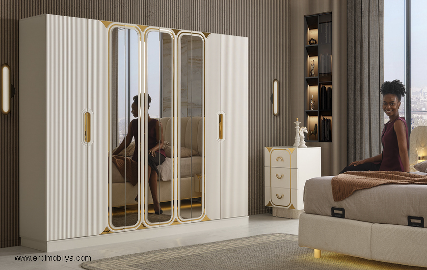 Ürüne Ait Parça Adetleri : 6 Kapılı Dolap, Şifonyer + Aynası, 2 Adet Komodin, Başlık , Çamaşırlık