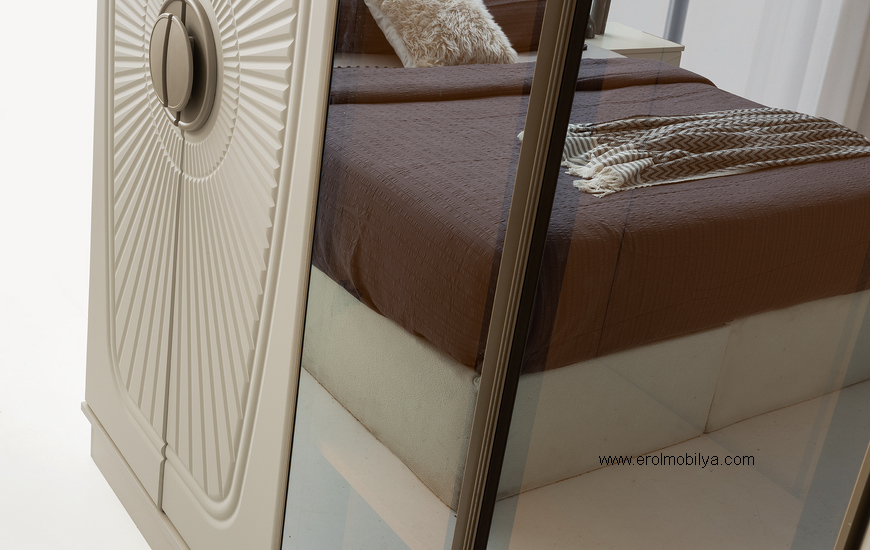 Ürüne Ait Parça Adetleri : 6 Kapılı Dolap, Şifonyer + Aynası, 2 Adet Komodin, Başlık Bu Üründe Başlığa Uygun Baza ve Yatak Ölçüsü : 150 cm * 200 cm veya 160 cm * 200 cm dir(Yaylı Yatak ve Baza Fiyata Dahil Değildir) * TSE |